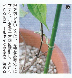 また、つるを支柱に絡ませたり、くぐらせたりすると、