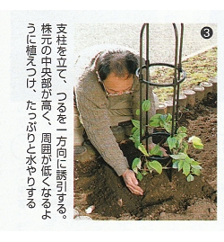 勇足後、2~3週間で新芽が動き始めます。つるが伸びてきたら、